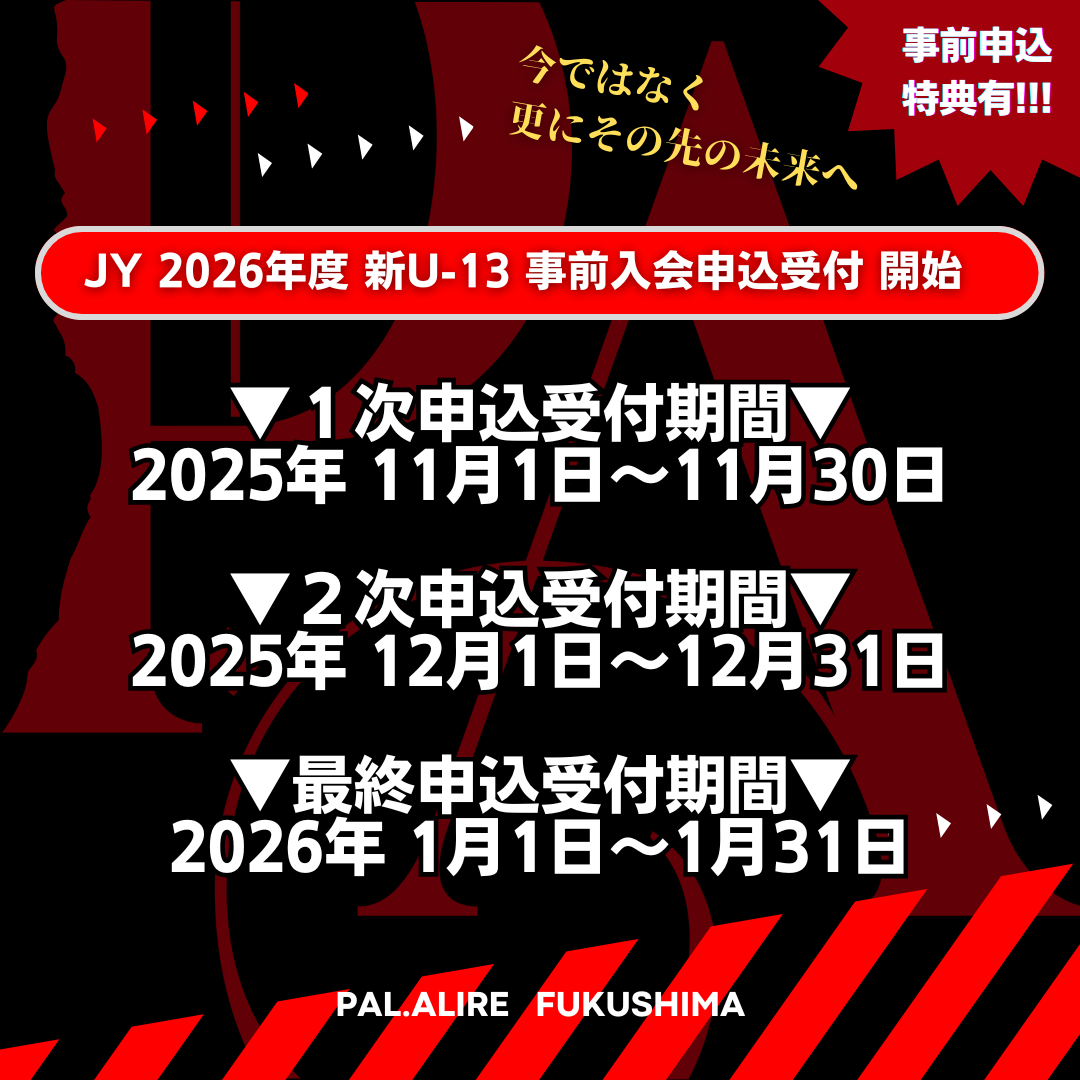♦対象:新U-13選手(2026年度より新中学1年生になる者)