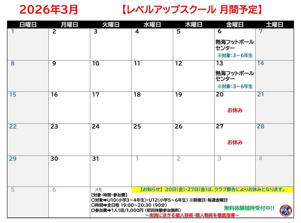 レベルアップスクール公式LINEを追加頂くと、毎月自動的に月間開催スケジュールが配信されます。
